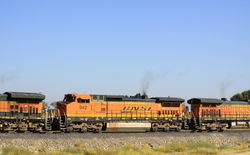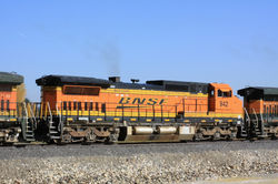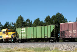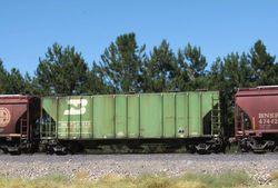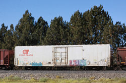 MBLX 34249 is a 67' LPG tank car. Built by UTC (Union Tank Car) in 1995, it holds over 33,000 gallons of liquified propane gas. There are three main variations of these LPG cars. The older ones have the dome in the center and have the walkway either right in the middle of the car, or off-center to the side. The newer variety has the dome offset to one side with no walkways.