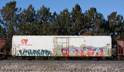 The large graffiti was difficult to replicate due to the spray can pattern on the prototype. I mimicked the sprayed-on reporting marks and separate patched reporting marks found on the prototype.